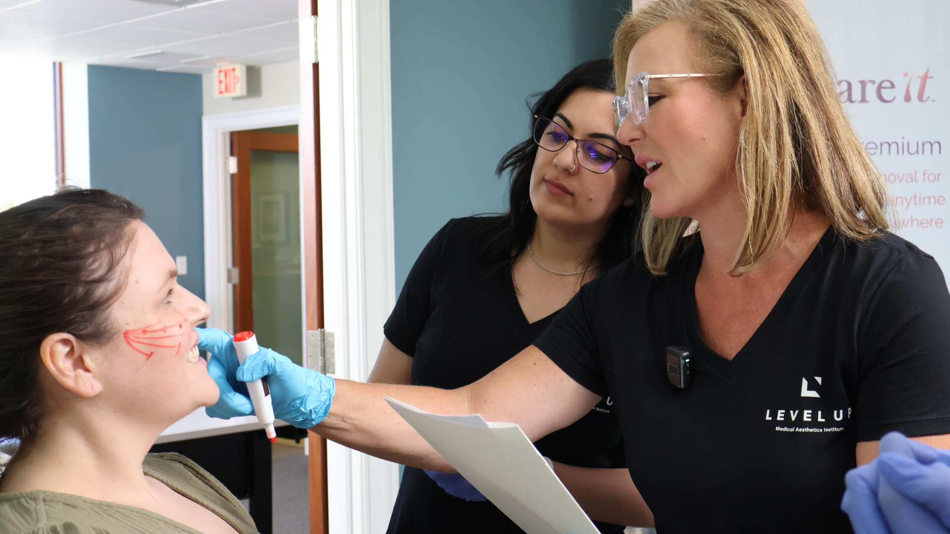 Level Up Medical Aesthetics Institute is the premier medical aesthetics training and education center in all of New England. Our unique, hands-on training courses will improve your artistry, skill, and injection technique through our Artistry, Safety & Knowledge (ASK) training model, helping you advance in the field of medical aesthetics.